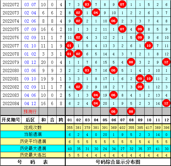 上期回顾:体彩大乐透第2022084期开出号码:03 11 19 25 27 + 04 12,其中前区奖号尾数奇偶比为5:0,大小比为3:2,012路比为2:2:1,大中小比为2:2:1,后区奖号尾数奇偶比为0:2,大小比为0:2。