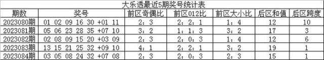 大乐透第2023084期奖号开出:03、05、08、24、32+07 08。其中前区奇偶比为2:3,大小比为2:3,和值为72,012路比为2:0:3。