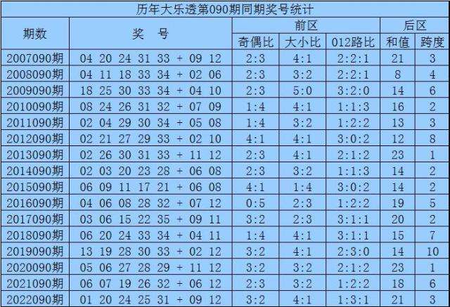 袁军师体彩大乐透第2023090期历史同期奖号分析: