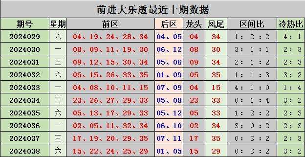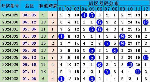 上期回顾:大乐透第2024038开奖,本期奖号:前区15 22 24 25 29;后区01 05。当期前区号码大小比为4:1,三区比0:3:2,奇偶比3:2。前区开出连号24 25,开出重号29。
