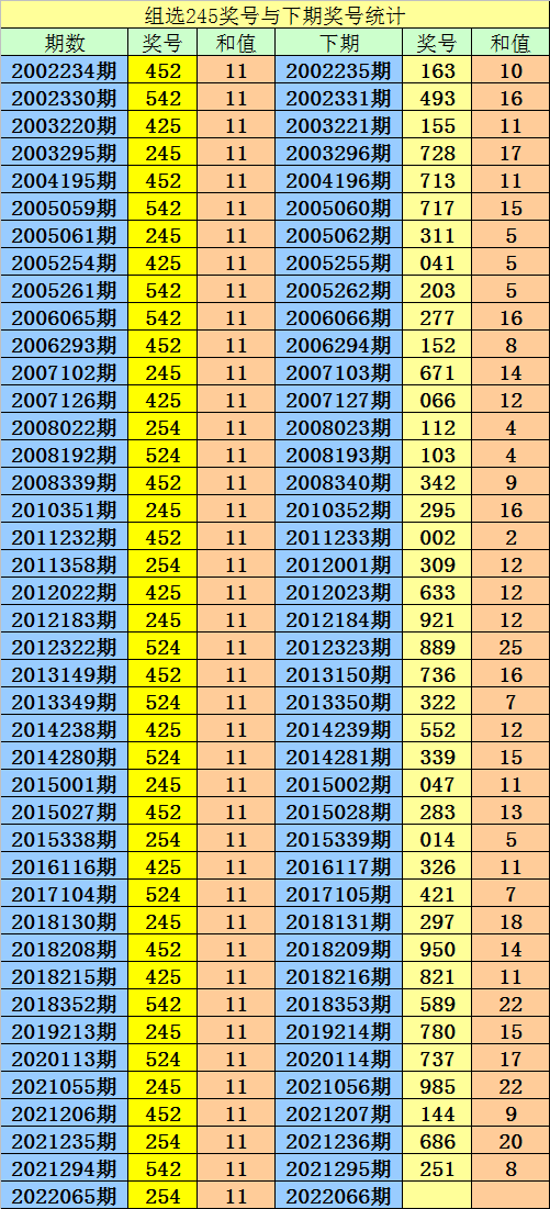 和尾分析:第066期历史同期开奖中,奖号和尾出现频次分别为:和尾2、4、5、7出现3次,和尾0、1、6、8出现2次,和尾3、9出现0次,其中和尾大小比为10:10,012路比为4:8:8,奇偶比为8:12,本期看好开出大和尾,精选和尾5。
