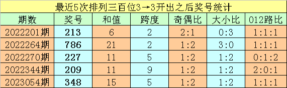 1、排列三最近两期百位号码分别开出3和3,历史上百位号码连续两期分别开出3和3的奖号出现了55期。前五期开出之后其下期奖号分别为:213、786、227、209、348;