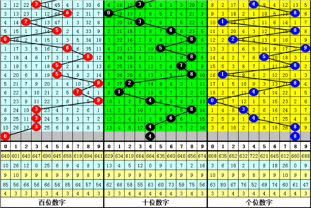 3、在以上0-9号码频次中,号码012路比为7:22:25,奇偶比为28:26,本期预计百位开出偶数号码,参考号码0。