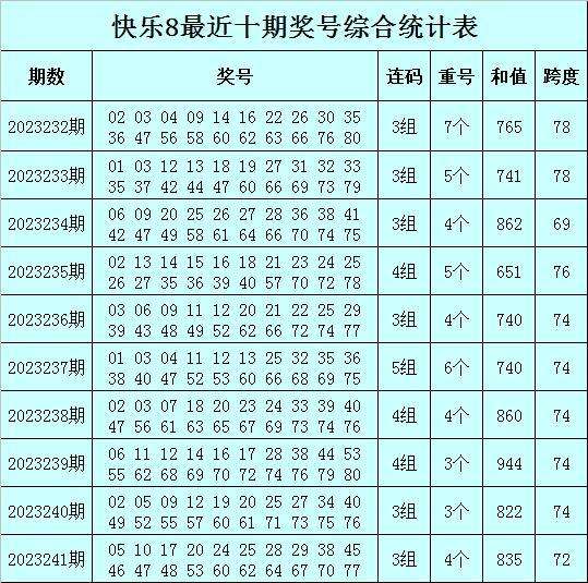 快乐8第2023242期综合分析
