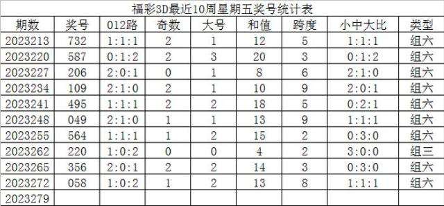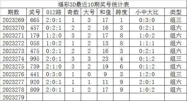 福彩3D第2023279期发哥推荐:
