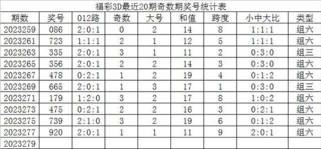279期发哥福彩3D预测奖号:奇偶分析