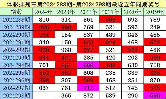 夏姐体彩排列三第2024298期奖号推荐: