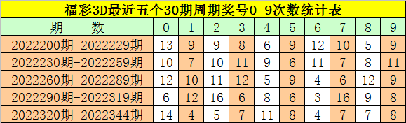 钟玄福彩3D第2022345期预测: