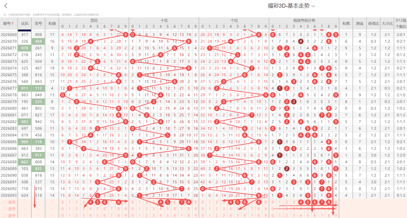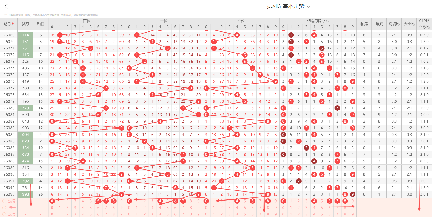 ①百位:上期开出大号奇数9号,在历史开奖记录中显示一般正常的奇偶周期平均在1~3期为普遍现象,奇数连续开出3期上期为0路号码,依据奇偶以及012路周期性规律的转变特征点即本期0路号码有开出的趋势2路号码注意预防。