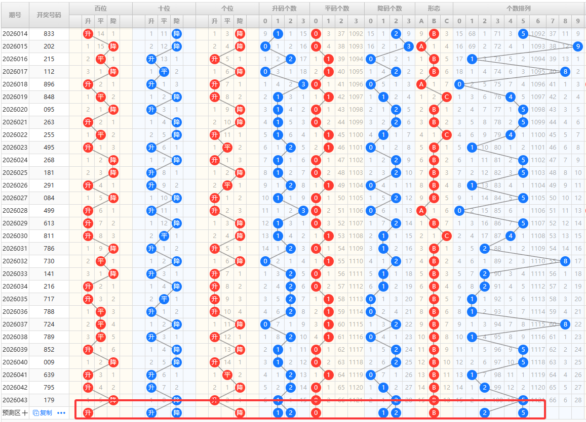升平降形态举例:A(全升码、全平码、全降码) B(升码、平码、降码有一个不出) C(升码、平码、降码各出一个)
