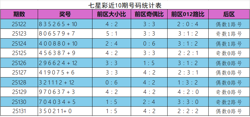 近10期后区012路比为 7:2:1,0路号码极度强势。