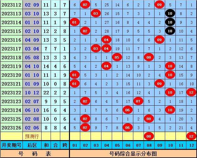 后区大范围推荐:01、02、07、08、12