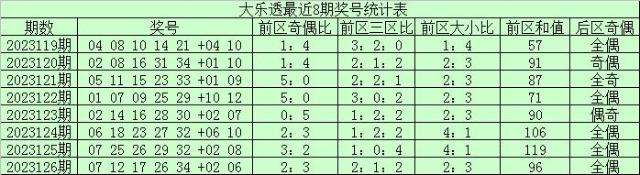 后区分析:上期开出后区奖号02+06,为全偶组合后区最近10期全奇、全偶和一奇一偶组合分别开出1次、5次和4次,本期后区继续关注全偶组合,参考号码08、12。