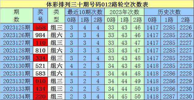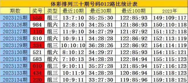 开奖回顾:排列三第2023134期奖号为:220,号码012路比为1:0:2。