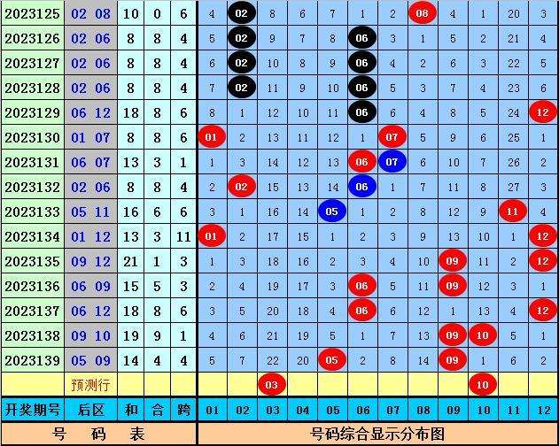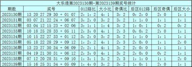 赵研大乐透第2023140期奖号012路分析:
