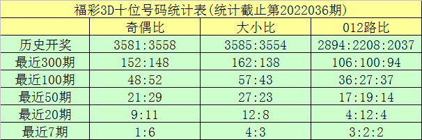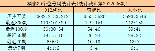 百位推荐:上期开出号码6,为大号、偶数、0路号码,该位前7期大小比为6:1,小号出现较少,本期注意回补;