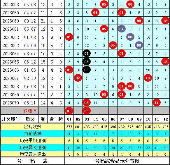 后区分析:上期后区奖号为03+11,本期后区注意重复号码出现,大范围参考号码01、03、04、05。