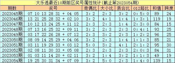 体彩大乐透第2023055期定位奖号属性分析:
