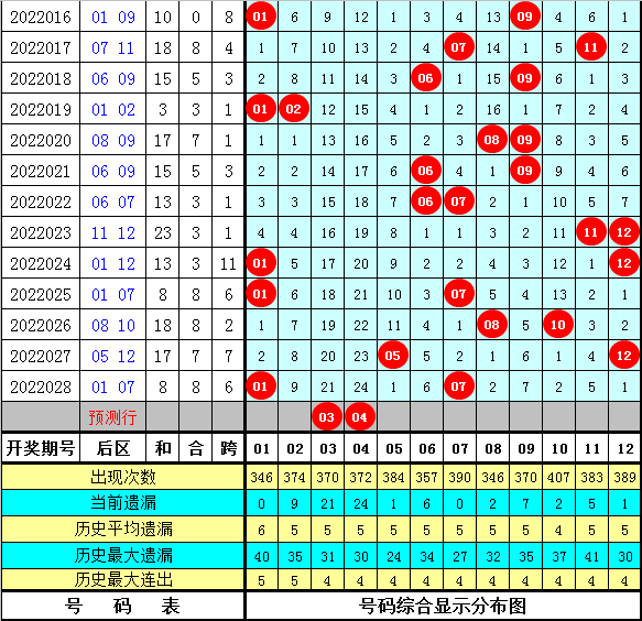 上期开奖:体彩大乐透第2022028期奖号为04 09 16 17 35 + 01 07,前区三区比为2:2:1,奇偶比为3:2,和值为81,012路比为1:2:2。