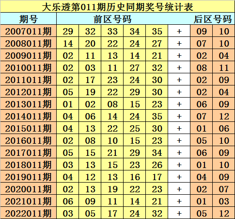 6。重号:历史同期重号开出9次,走势相对较热,本期看好去年同期重号再出,参考号码05 32。
