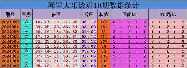 上期回顾:大乐透开奖:前区05 10 18 26 27后区03 06。当前前区和值86,区间比2:1:2,012路比2:1:2。