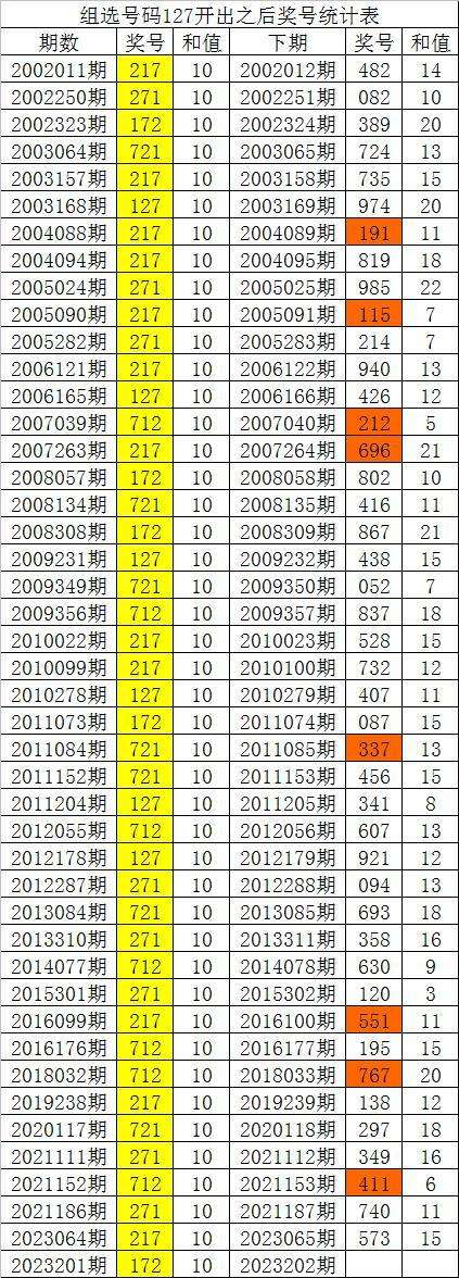 福彩3D第2023201期开出组选号码:127,该号码历史上组选出现了45次,其下期分别开出了号码:482、082、389、724、735、974、191、819、985、115、214、940、426、212、696、802、416、867、438、052、837、528、732、407、087、337、456、341、607、921、094、693、358、630、120、551、195、767、138、297、349、411、740、573,如图: