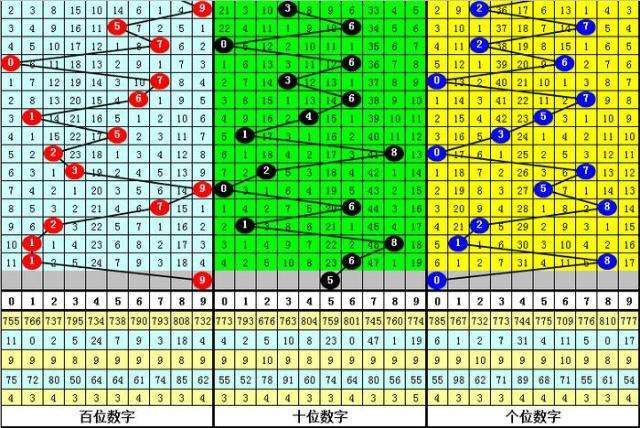 百位分析:该位最近10期开出了3个0路号码、4个1路号码、3个2路号码,1路号码热出。本期排除1路号码,参考号码:9。