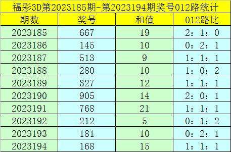 福彩3D第2023195期012路分析