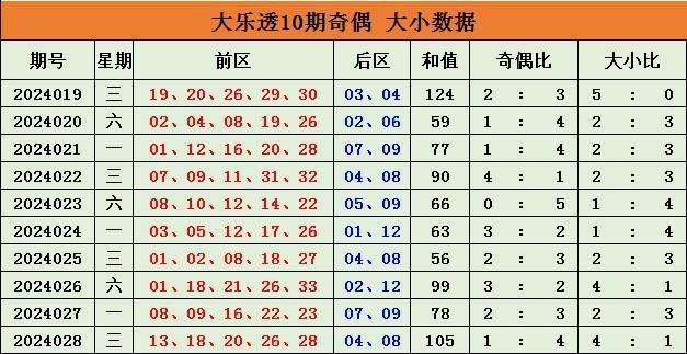 大小比分析:上期大小比4:1,近10期大小总比值25:25;近3期大小总比值为10:5,大小号开出率大号占优,综合分析,预计大号出号较多,推荐大小比3:2。