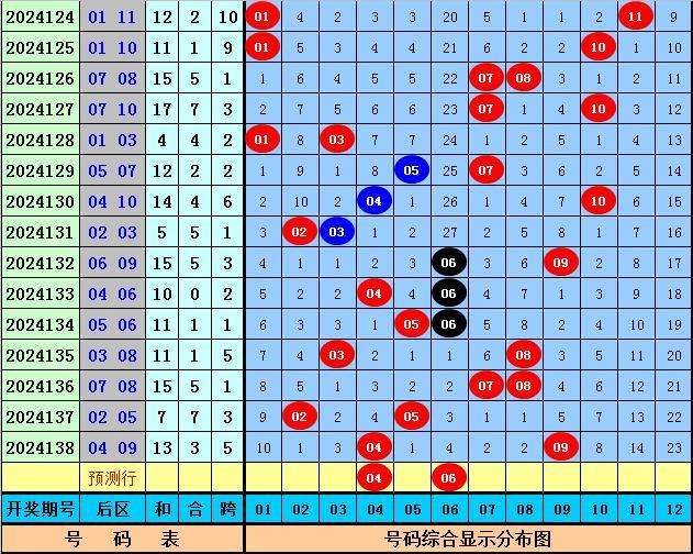 后区分析:上期后区开出号码04和09,最近10期后区奖号奇偶比为9:11,大小比为7:13,本期后区看好号码01、03、04、06、11,后区单挑两码04、06。