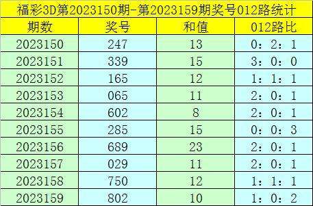上期回顾:福彩3D第2023159期开出奖号:802。奖号为组六形态,与试机号有同号,奇偶比为0:3,大小比为1:2,012路比为1:0:2,和值为10,跨度为8。