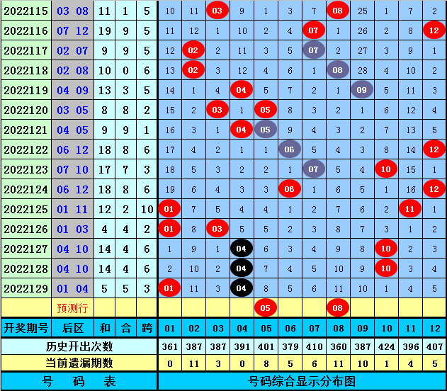 后区5码参考:03、05、07、08、12
