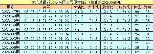 开奖回顾:体彩大乐透第24006期开出奖号为:08 13 16 17 33+02 10,前区奇偶比为3:2,大小比为1:4,012路比为1:2:2,质合比为2:3,后区奇偶比为0:2,大小比为1:1,012路比为0:1:1,质合比为1:1。