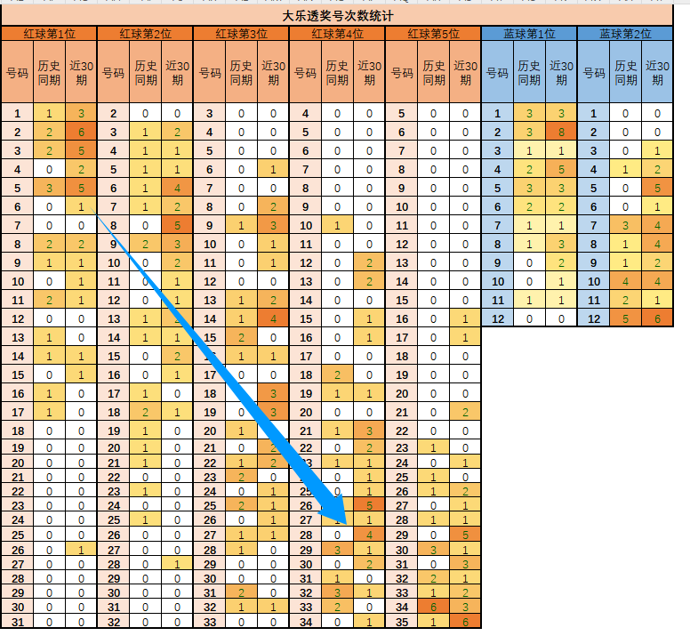 统计历史同期、近30期奖号频率,热门摸底,灵感来源