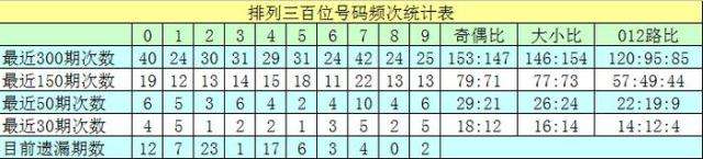 百位号码:前50期走势活跃的号码为:7开出10个,0、3、9开出6个;走势最冷的号码为:5开出2个,2开出3个,4、6、8开出4个。奖号012路比开出22:19:9,奇偶比开出29:21。本期百位杀排除:4、5,注意号码0、1、9,胆码参考0。