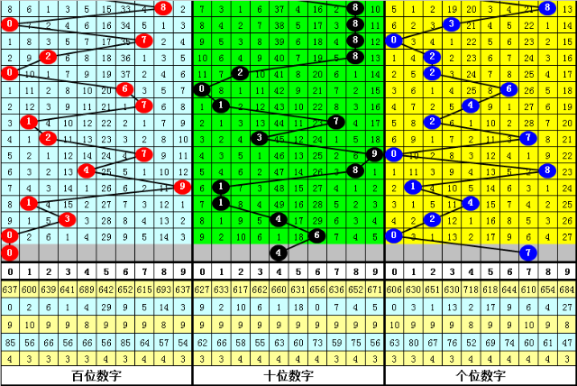 大中小分析:在组选0-9号码分布图中,前10期小号(0-2区段)出现13枚奖号,中号(3-6区段)出现9枚奖号,大号(7-9区段)出现8枚奖号,上期大号区域轮空,本期预计大中小区域各出1枚奖号,
