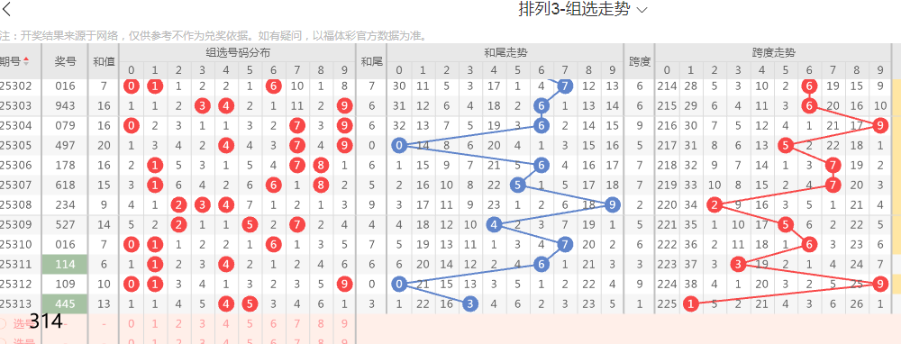 三是技巧与运用; 代码走势图是组号分析的重要工具,它能直观展示代码在历史开奖中的出现频率、遗漏值和连出规律,帮助我们更好地把握号码走势,锁定本期大概率出现的代码组合。当通过代码走势图确定 “最小号或最大号+合值+跨度” 的代码组合后,即可将其转换为具体号码。例如,若研判出的代码组合是 “4-3-5”,根据前文的分组与代码对应关系,对应的便是 “最小号码3456合值13579 + 跨度5/6/7”共计10注号码。通过这种方式,能将抽象的代码转化为具体的数字属性特征,方便缩小选号范围,提高选号精准度。若想进一步优化,还可结合定胆、杀码、合值、跨度等方法进一步缩水。感谢浏览点赞本帖的朋友!熟能生巧,技巧是能力,中奖是运气,而运气中藏着思路、方法与技巧。精研此法虽不能保证天天中奖,但能提高中奖概率!本期分析就到这里,下期再见!