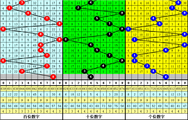 上期第二位奖号为:3,间隔21期之后开出,表现相对冷,前10期该位热码开出次数较少,本期注意该位热码逐渐回暖,关注号码4。