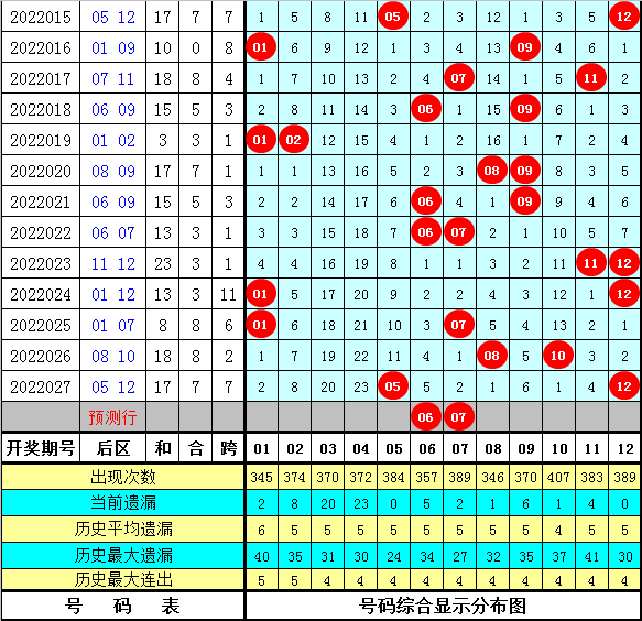 后区参考5码:01 06 07 11 12