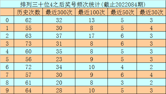 第二位杀号:第二位上期开出奖号为4,该位历史上奖号4开出了624次,最近100次第二位奖号出现4后,下期落号0-9次数从高到低分别为:号码2→17次,0→13次,6、9→10次,5、7→9次,1、3、4、8→8次。