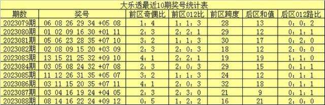 杨剑大乐透第2023089期连续10期奖号综合分析: