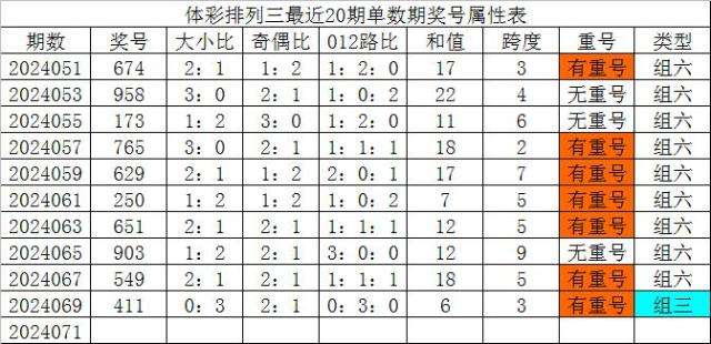 体彩排列三第2024071期发哥观点: