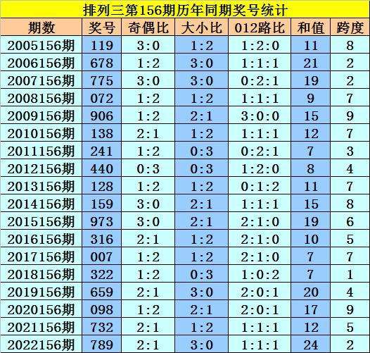 本期为排列三第2023156期开奖,历史上排列三第156期已开出了18期奖号了: