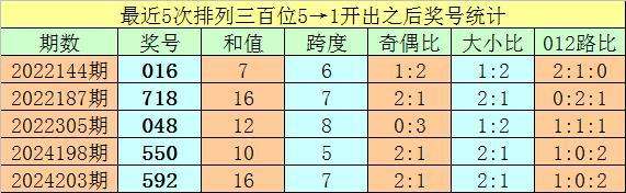 1、排列三最近两期百位号码分别开出5和1,历史上百位号码连续两期分别开出5和1的奖号出现了62期。前五期开出之后其下期奖号分别为:016、718、048、550、592;