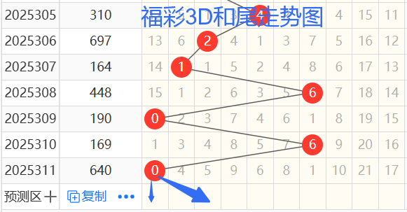 们依次是16060和尾,按照012路排序是10000路和尾,后面四期是同路,今天就开四进五定0路的和尾,为什么这么讲呢,这个是个大概率的问题,也是根据长期的研究规律定的,准确率相当高,我定了0路的和尾,也就是0369和尾,那么我们再来看和值,按照和值除3余数的话,可以分为余0 1 2路. 那么我们来看307期和值11余2,308期和值16余1,309期和值10余1,310期和值16余1,311期和值10余1,那么本期看和值看余1,根据上面的和尾那么就只有 10 13 16 19 和值