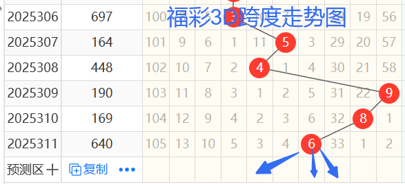 依次是54986跨度,按照路数转换关系来看,那么跨度我们暂定147369跨 ,本期个人比较看好4 6 7 5跨。