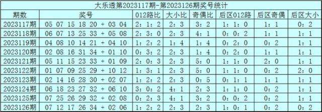 赵研大乐透第2023127期奖号012路分析: