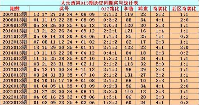 综上所述,大乐透第2024013期前区012路比参考1:2:2。