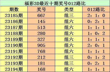 开奖回顾:第2023194期3D奖号为168。形态:组六,奇偶比1:2,大小比2:1,012路比为1:1:1。