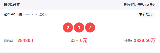 2026105期开奖号码: